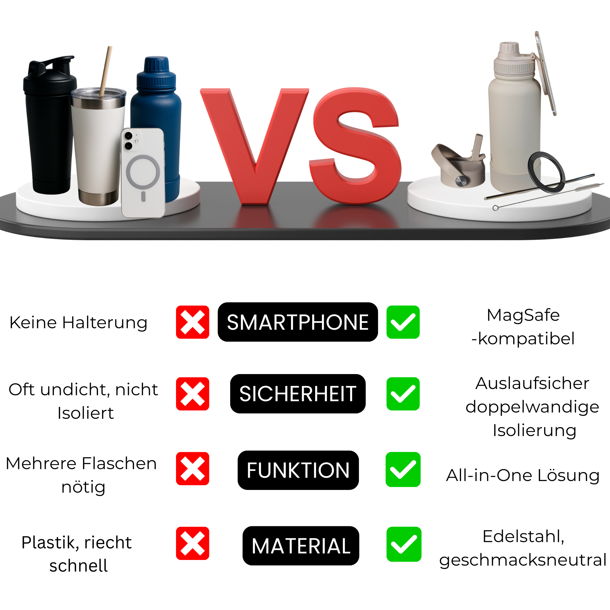 CIRQ kombiniert Thermoflasche, Shaker und MagSafe-Stativ – für Alltag, Workout und Content Creation. Entwickelt für alle, die unterwegs mehr wollen.