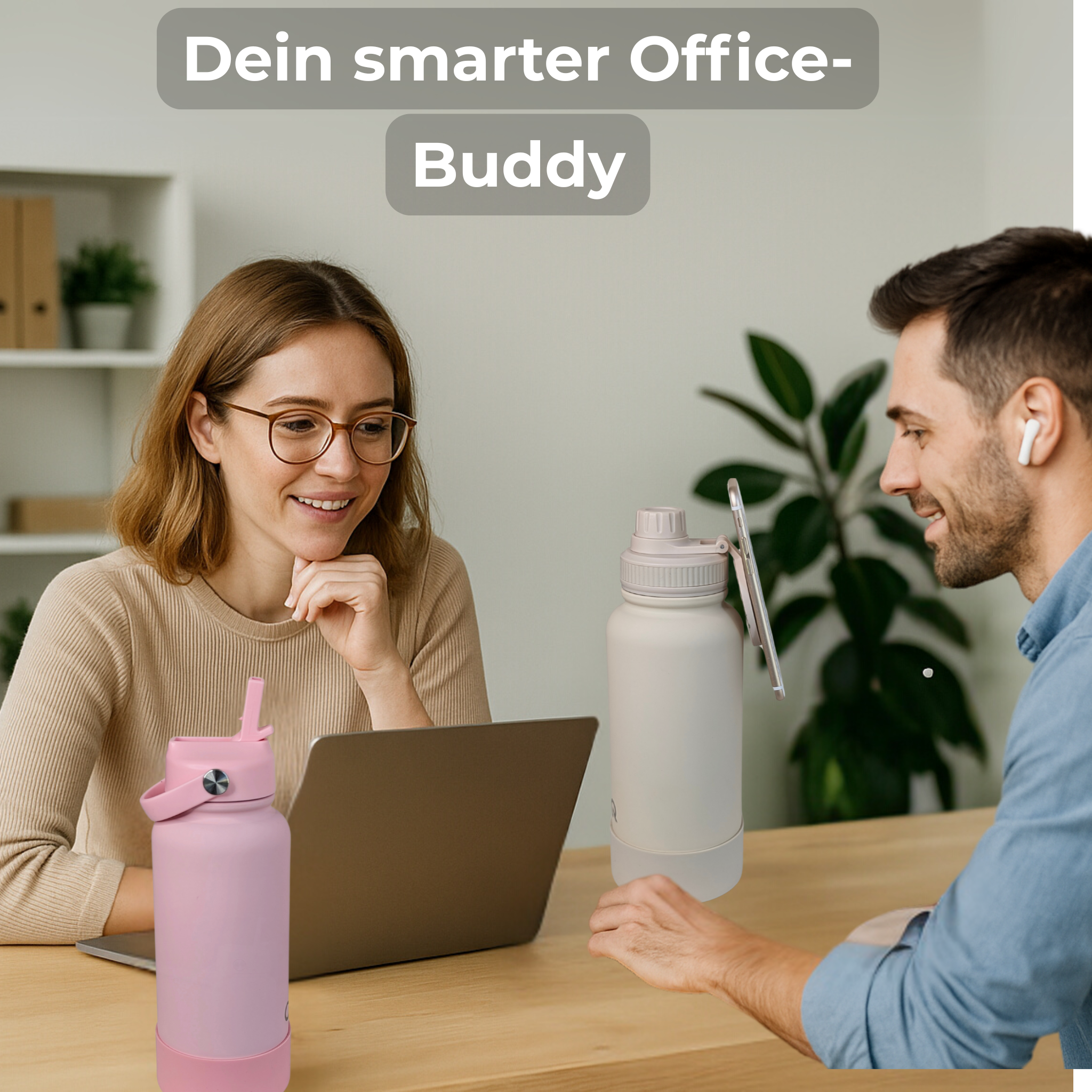 Im Homeoffice oder im Büro: Die CIRQ-Flasche unterstützt dich genau da, wo du sie brauchst – als stilvolle Halterung für dein Smartphone und als hygienischer Begleiter für heiße oder kalte Getränke.
